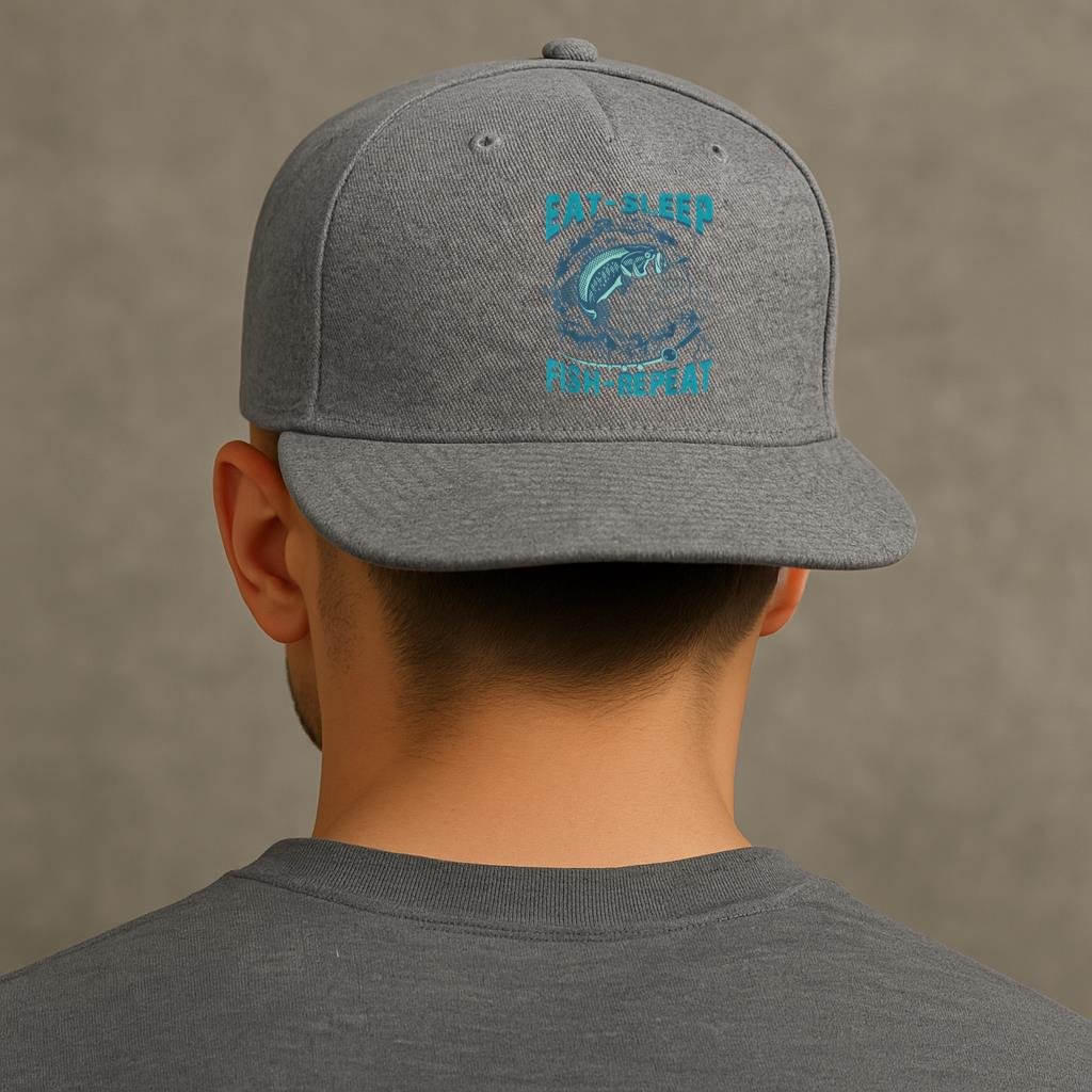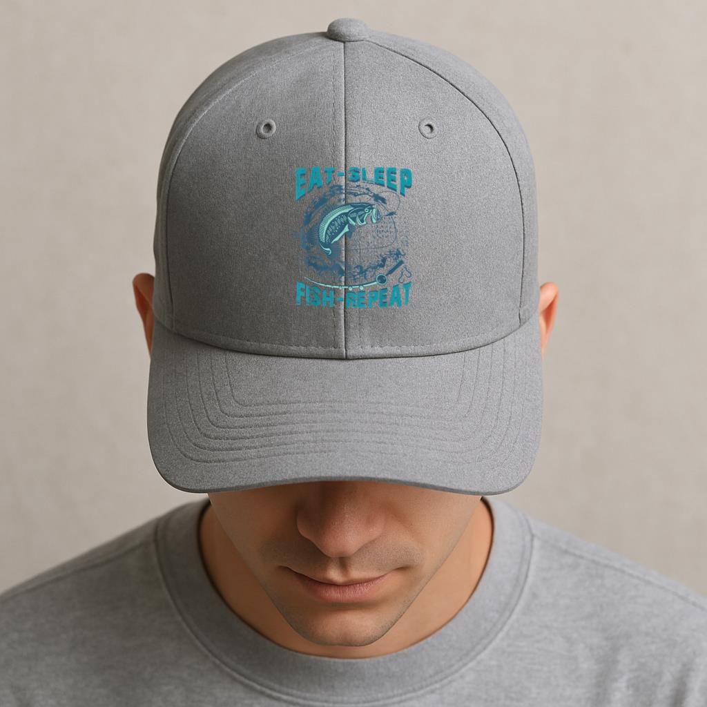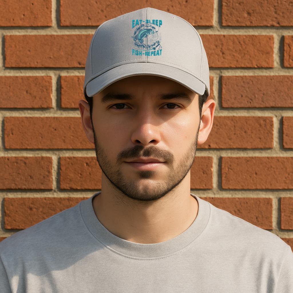 Eat Sleep Fish Repeat Fishing Cotton Twill Cap Cotton Twill Cap – Adjustable 6-Panel Baseball Hat for Everyday Wear