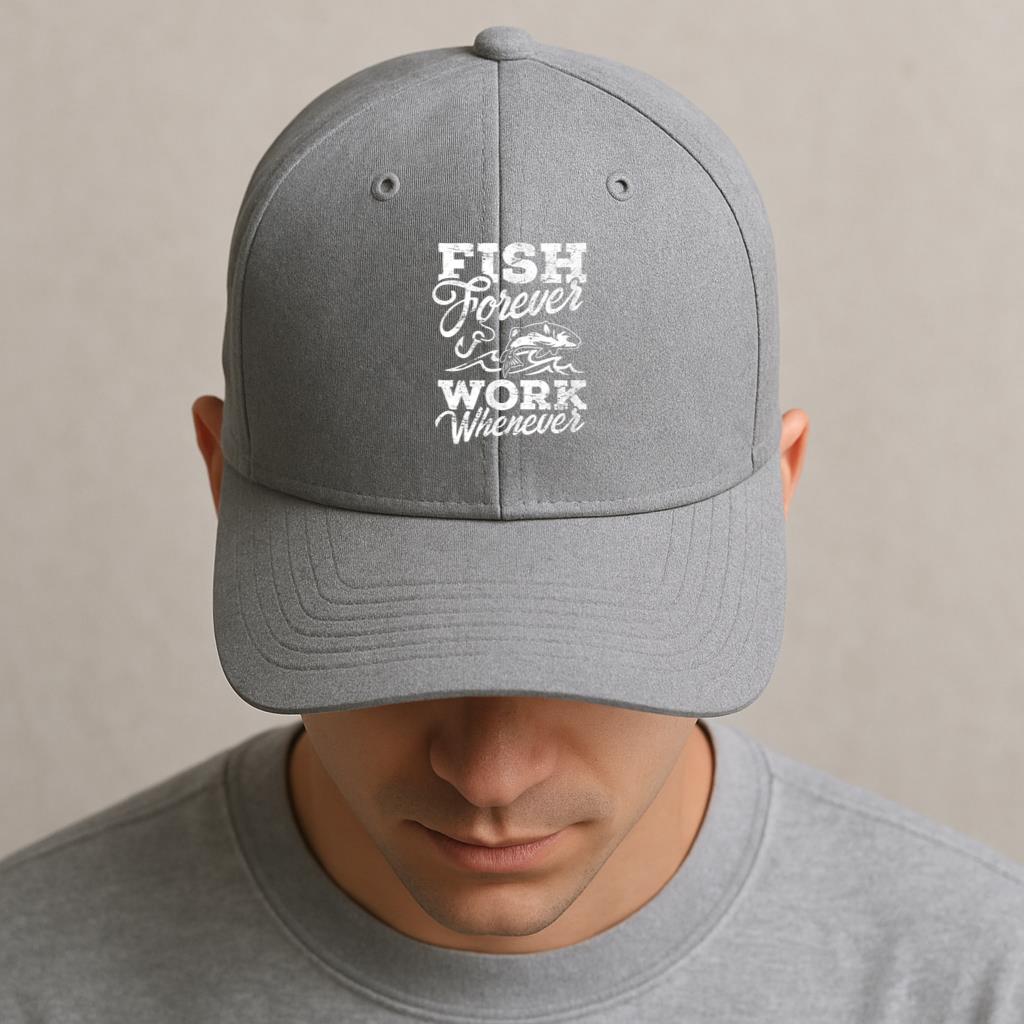 Fish Forever Work Whenever Cotton Twill Cap Cotton Twill Cap – Adjustable 6-Panel Baseball Hat for Everyday Wear