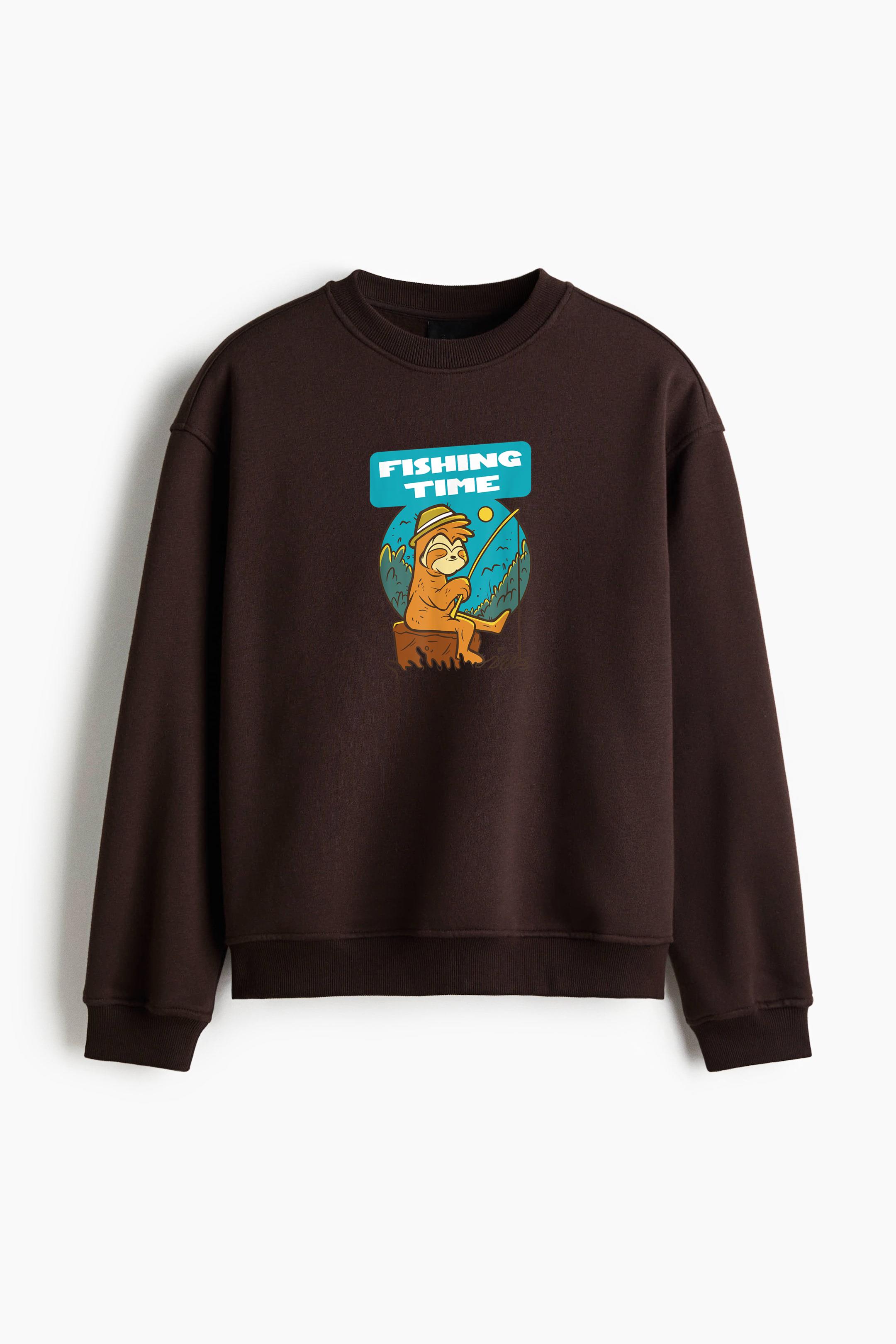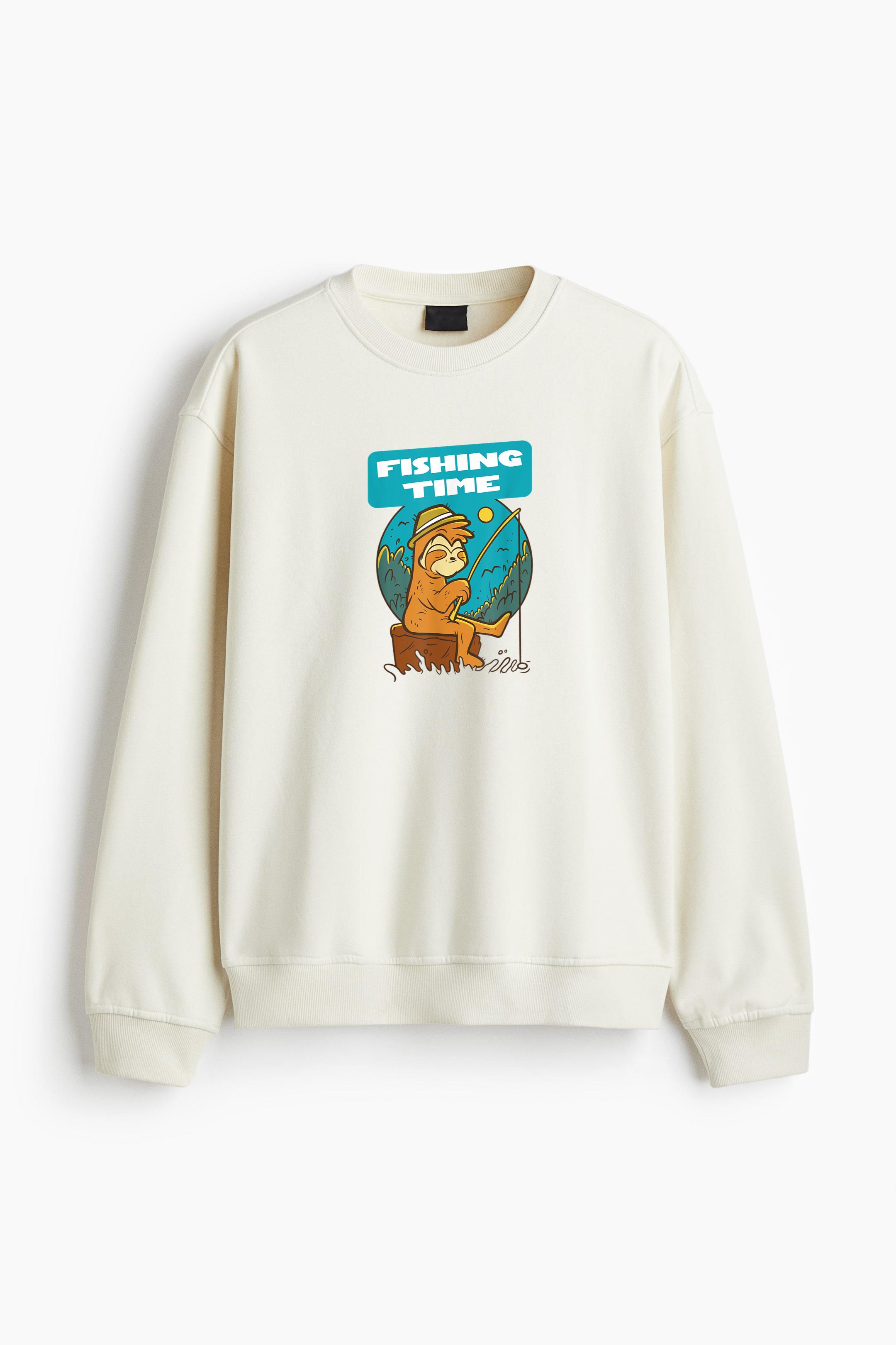 Fishing Time Sloth Regular Fit Printed Sweatshirt Regular Fit Printed Sweatshirt – Soft Cotton Fleece Pullover with Graphic Design