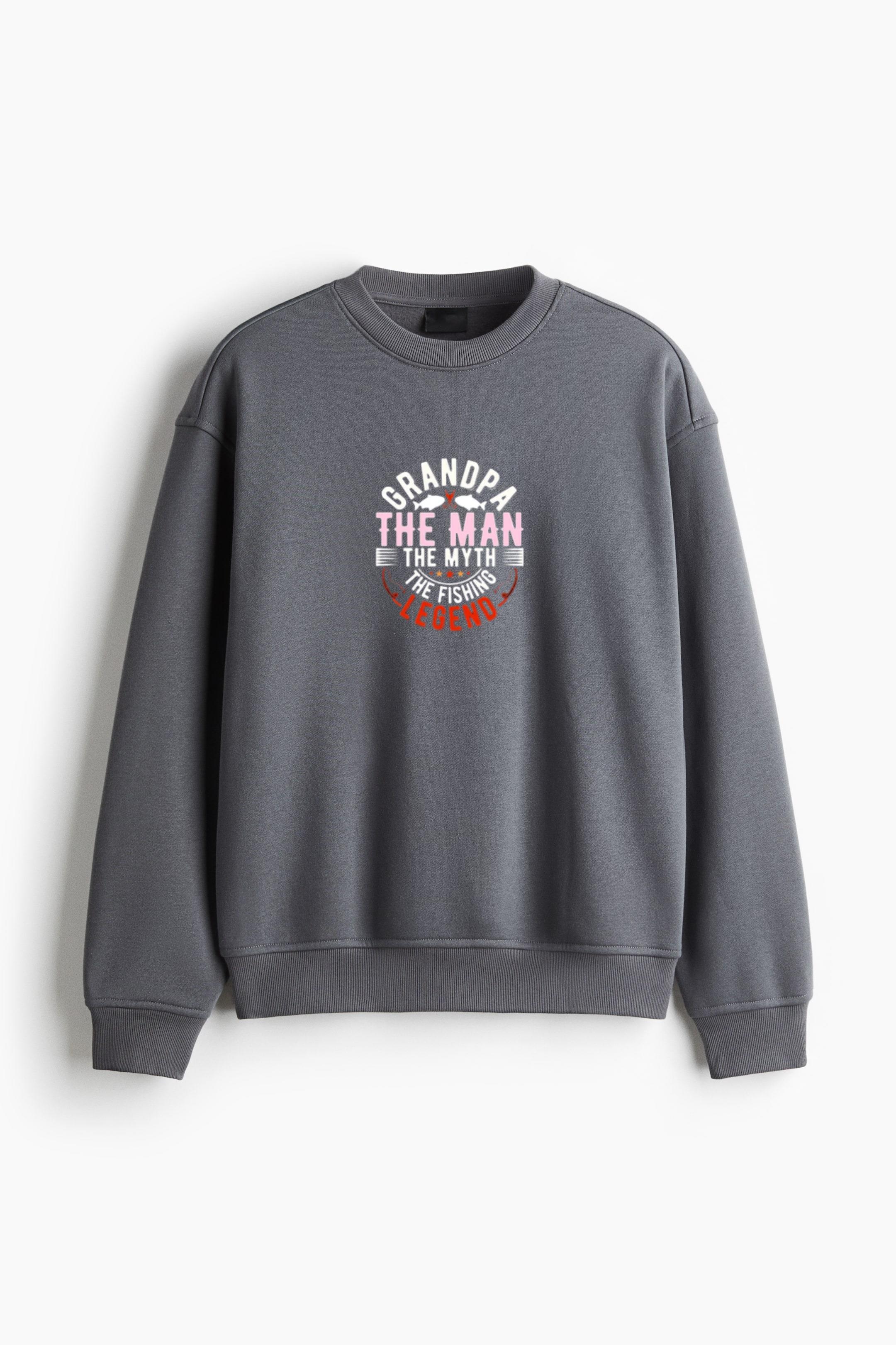grandpa man myth fishing legend X Regular Fit Printed Sweatshirt Regular Fit Printed Sweatshirt – Soft Cotton Fleece Pullover with Graphic Design