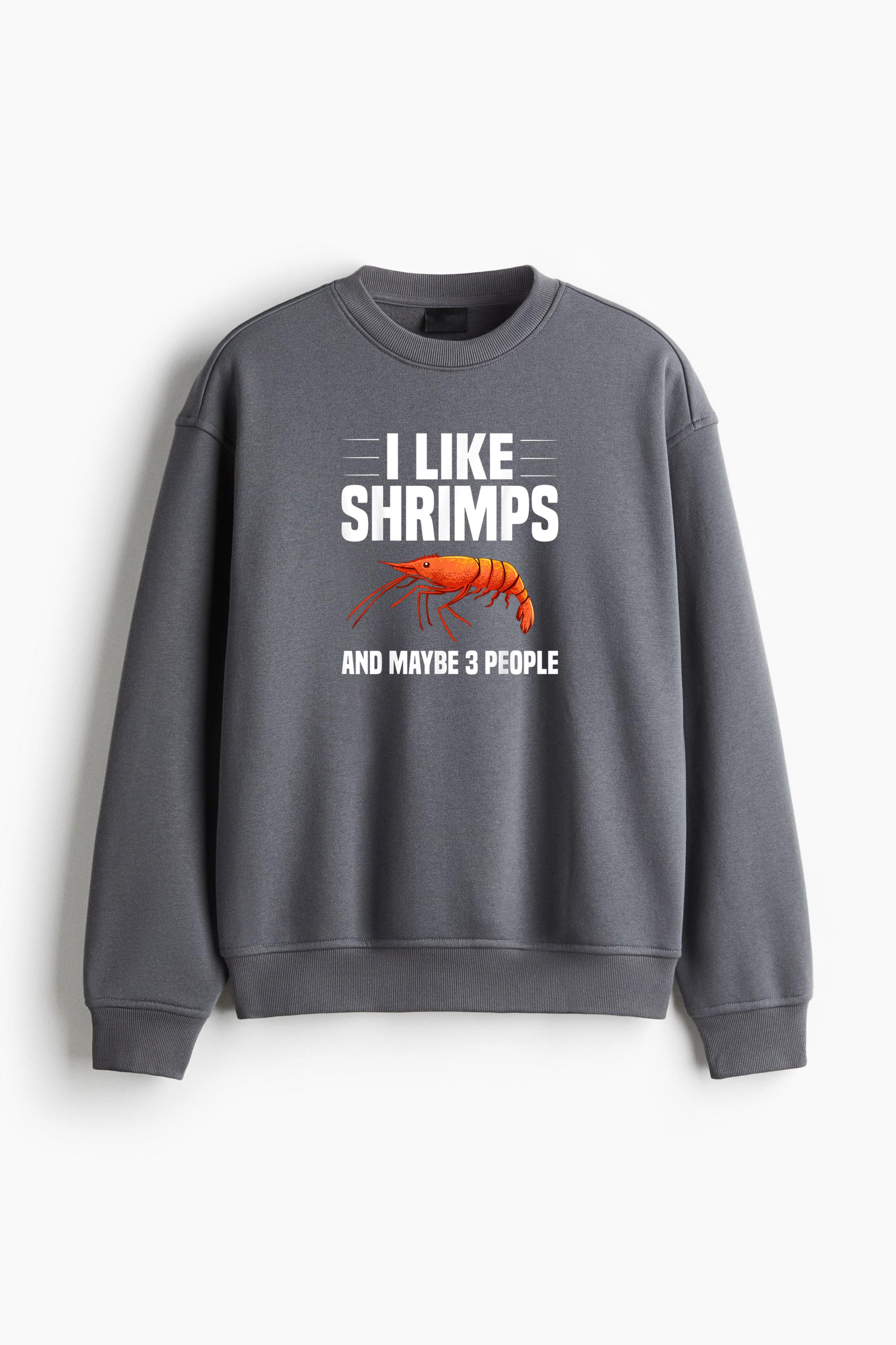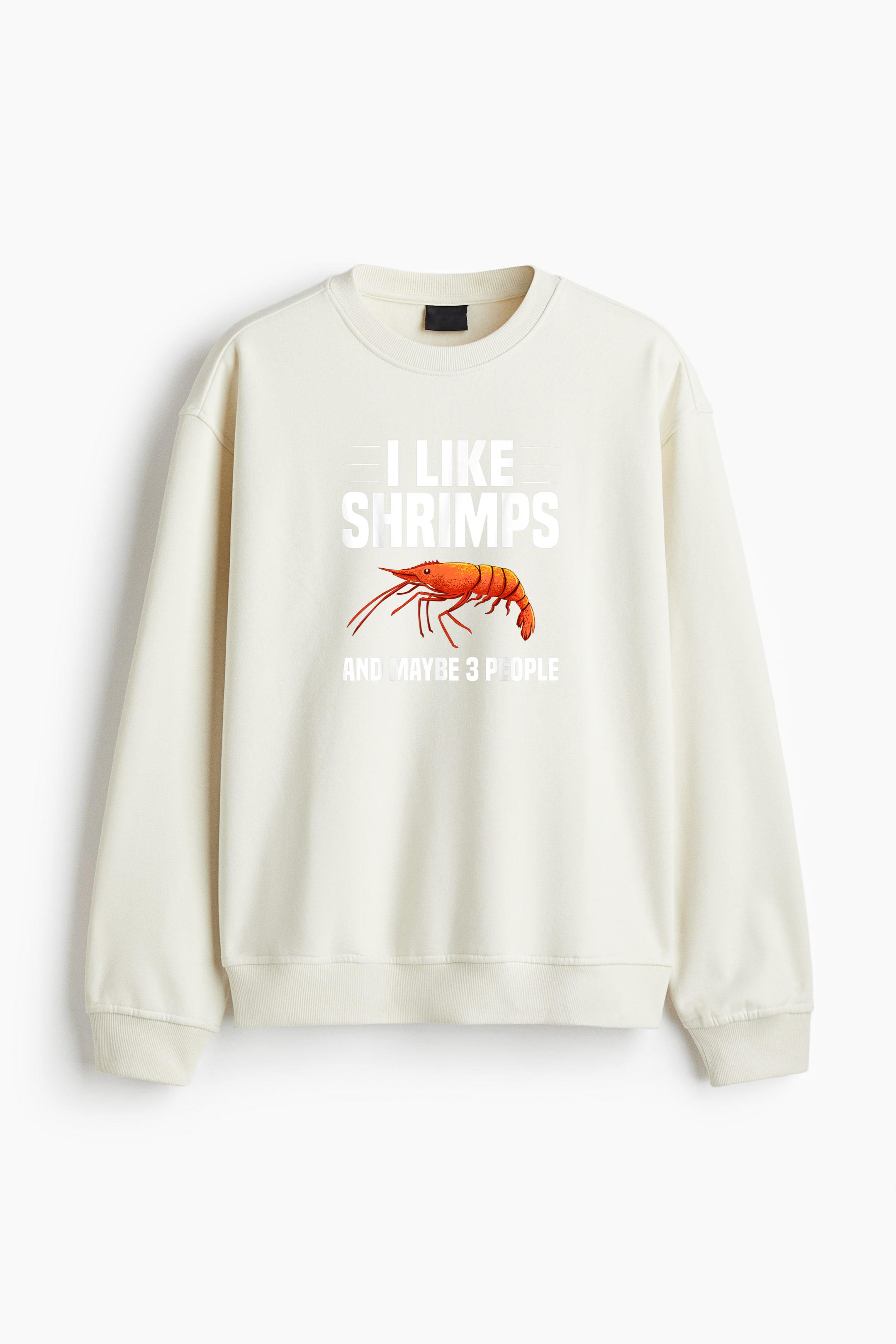 I Like Shrimps And Maybe 3 People Fishing Regular Fit Printed Sweatshirt Regular Fit Printed Sweatshirt – Soft Cotton Fleece Pullover with Graphic Design