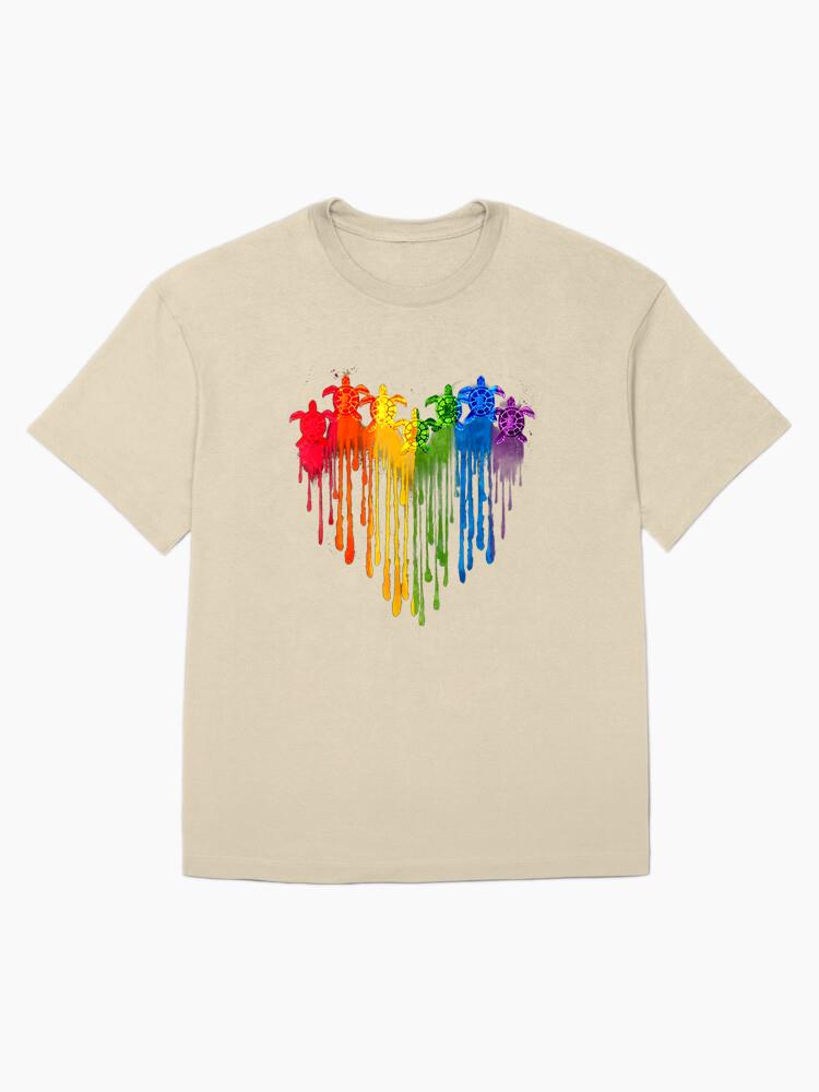 LGBT Turtle Heart Rainbow Oversized T-Shirt Oversized T-Shirt – Soft Cotton Relaxed Fit Tee for Streetwear and Everyday Comfort