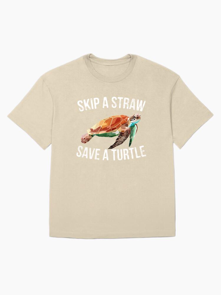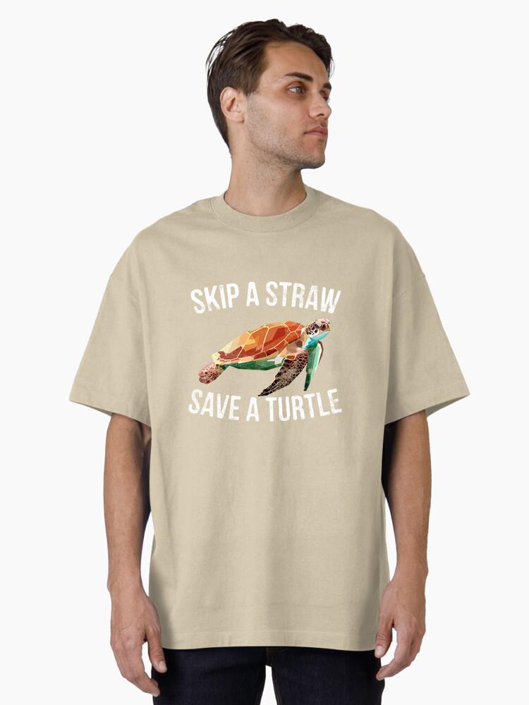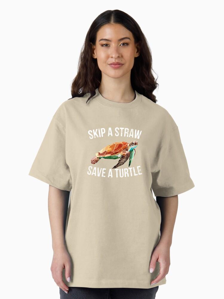 Skip A Straw Save A Turtle LongSleeve Animal Lover Earth Day Oversized T-Shirt Oversized T-Shirt – Soft Cotton Relaxed Fit Tee for Streetwear and Everyday Comfort